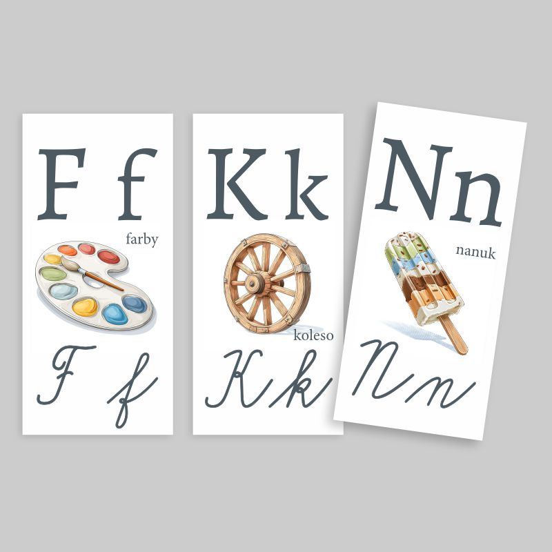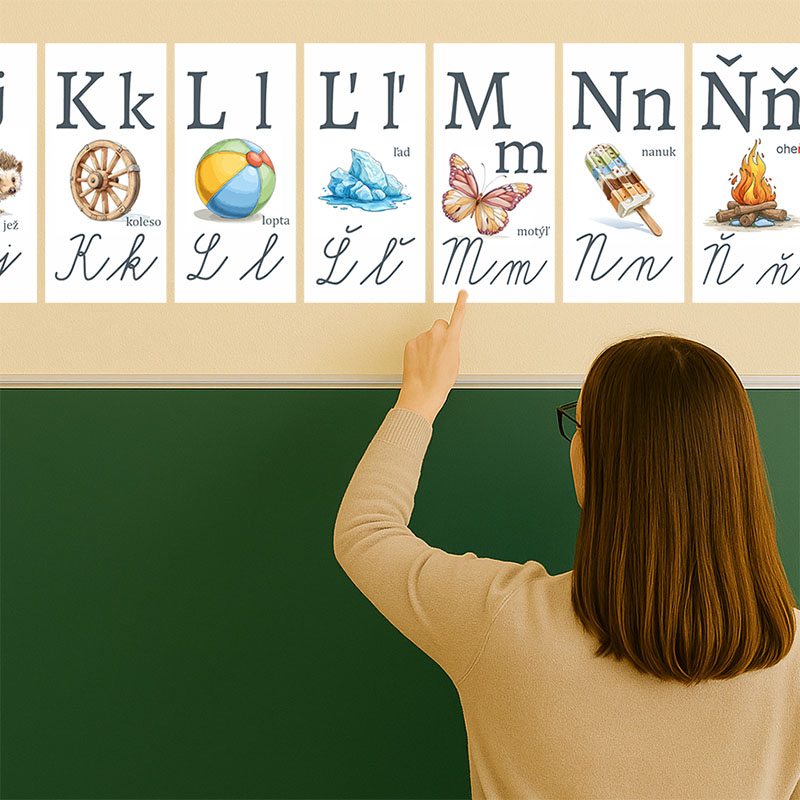 Nápovedné nástenné obrazy s abecedou sú navrhnuté špeciálne pre potreby 1. ročníka základnej školy. Kombinujú jasnú didaktickú funkciu s estetickým prevedením, ktoré zútulní triedu a podporí pozitívnu atmosféru pri učení.