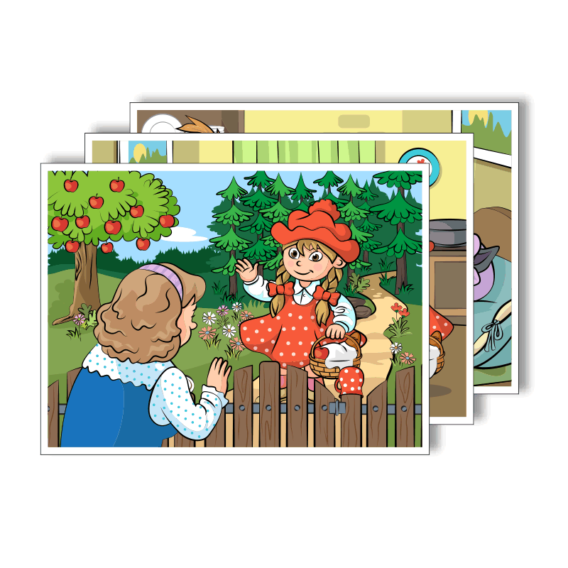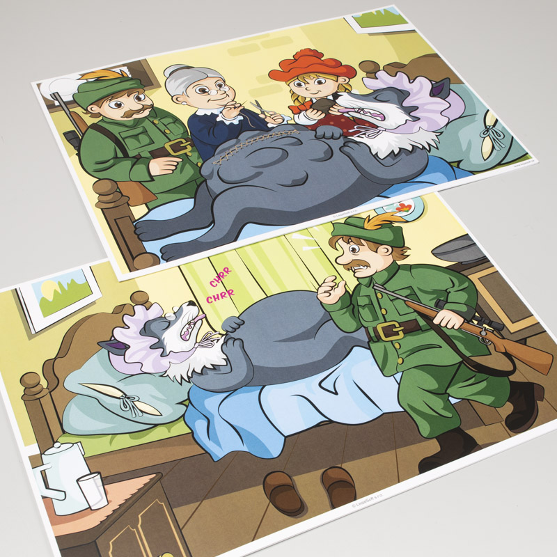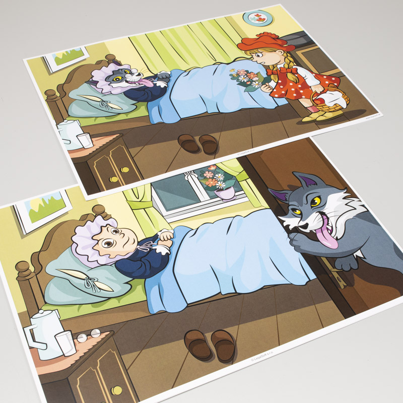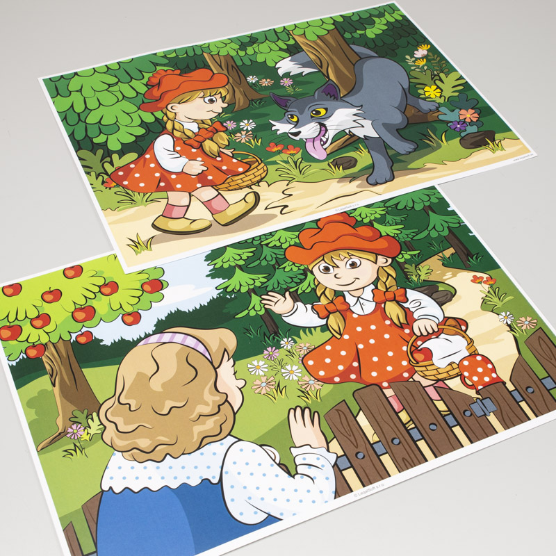 Súbor 8 ilustrovaných obrazov vo formáte A3 pomáha vizuálne vnímať počúvaný text, reprodukovať obsah rozprávky a rozvíjať slovnú zásobu. Obrazy sú vytlačené na pevnom kartóne a sú vhodné pre použitie v divadielku „kamishibai“.