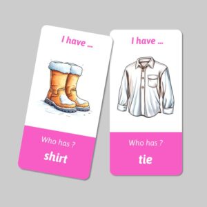 Hra „Ja mám, kto má“ je vynikajúcim nástrojom na precvičenie slovnej zásoby na tému oblečenie. Sada obsahuje spolu 24 kariet s 23 s rôznymi druhmi oblečenia. Zábava a vzdelávanie sa tak spoja do príjemnej a poučnej aktivity.