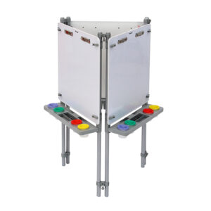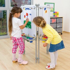 Tu vznikajú umelecké diela! Praktický trojstranný pracovný stojan s celkovou výškou 121cm využiteľný nielen na výtvarnej výchove, ale aj na prácu s magnetickými obrázkami alebo textami. Magnetické popisovateľné tabule majú 2 klipy na prichytenie papiera a pod každou tabuľou je držiak na rôzne maliarske alebo didaktické potreby.