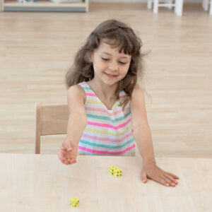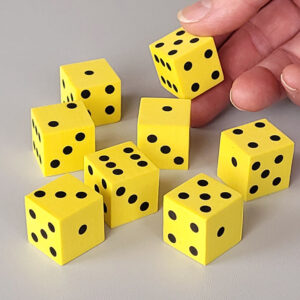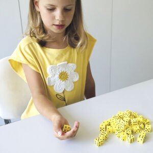 20 kusov molitanových MINI kociek s bodkami. Ideálne pre kolektívne hry, matematické rozcvičky alebo precvičovanie príkladov. Vďaka použitému materiálu sú nehlučné na akomkoľvek podklade. Čísla sú veľké a dobre čitateľné aj pri práci v skupine detí.
