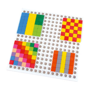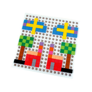 Deti využívajú farebné štvorčeky v 12 farbách a ukladajú ich na veľký plastový panel. Štvorčeková mozaika ponúka tvorenie veľkého množstva obrazcov, ornamentov, tvarov a kreatívnych obrázkov. Vhodná hra na precvičovanie jemnej motoriky detí v predškolskom veku.