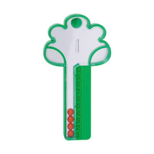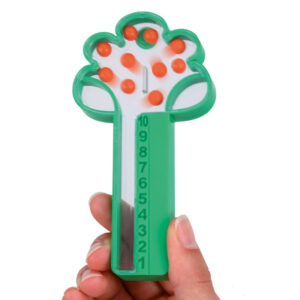 Uzatvárateľný otvor umožňuje regulovať počet guľôčok. Na prácu v triede môžete využiť nielen stromček, ale aj pečiatku na cvičenia v zošite. Potraste stromčekom a môžete začať počítať.