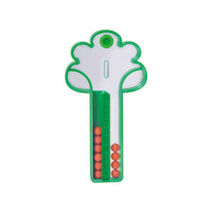 Stačí stromčekom zatriasť a desať guľôčok sa náhodne rozdelí do dvoch priehľadných stĺpcov. Dieťa vidí len jeden z nich a jeho úlohou je zistiť, koľko guľôčok sa nachádza v tom druhom – teda dopočítať do 10. Keď stromček otočí, môže si svoj odhad okamžite skontrolovať.