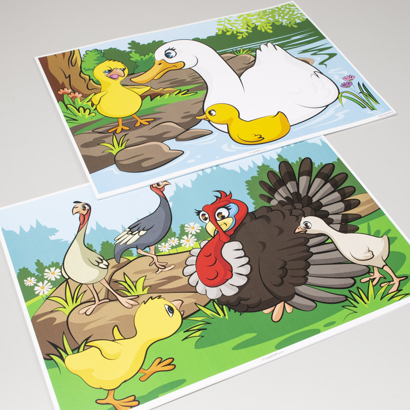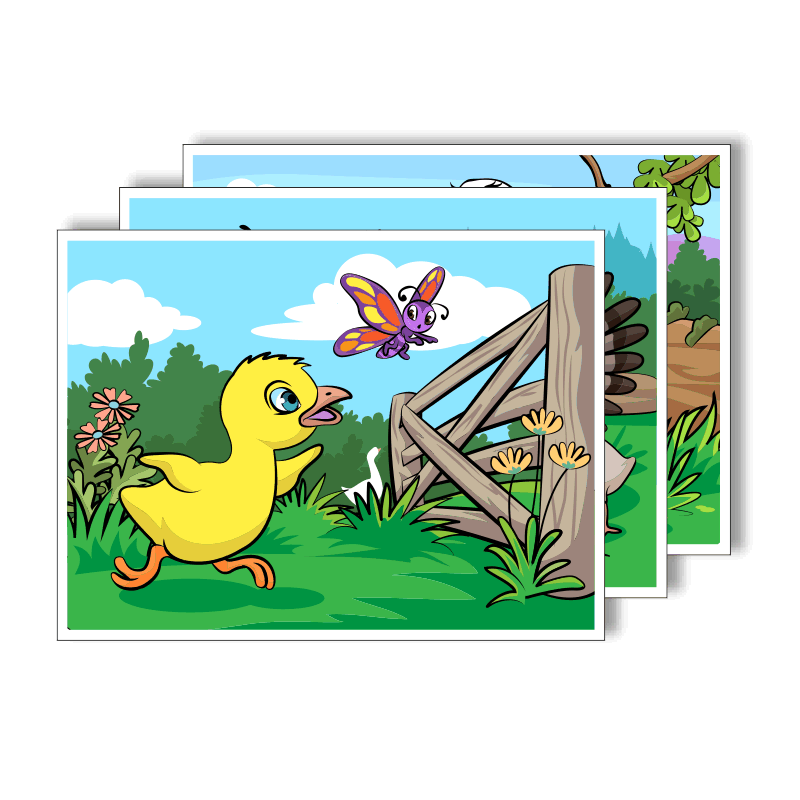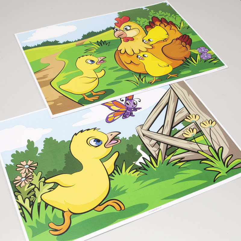 Súbor 6 ilustrovaných obrazov vo formáte A3 pomáha vizuálne vnímať počúvaný text, reprodukovať obsah rozprávky a rozvíjať slovnú zásobu. Obrazy sú vytlačené na pevnom kartóne a sú vhodné pre použitie v divadielku „kamishibai“.